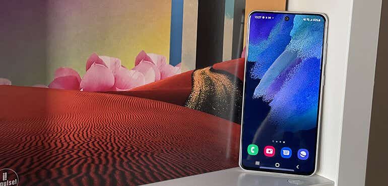 What is glasstic? It’s Samsung’s specialised material that looks like glass but is actually plastic. It’s not quite as nice as the metal on the standard S21, but since this is more of a mid-range device, premium materials are the most straightforward feature to scale back on. If that means other specs are more in line with the top handsets, that’s fine with us.