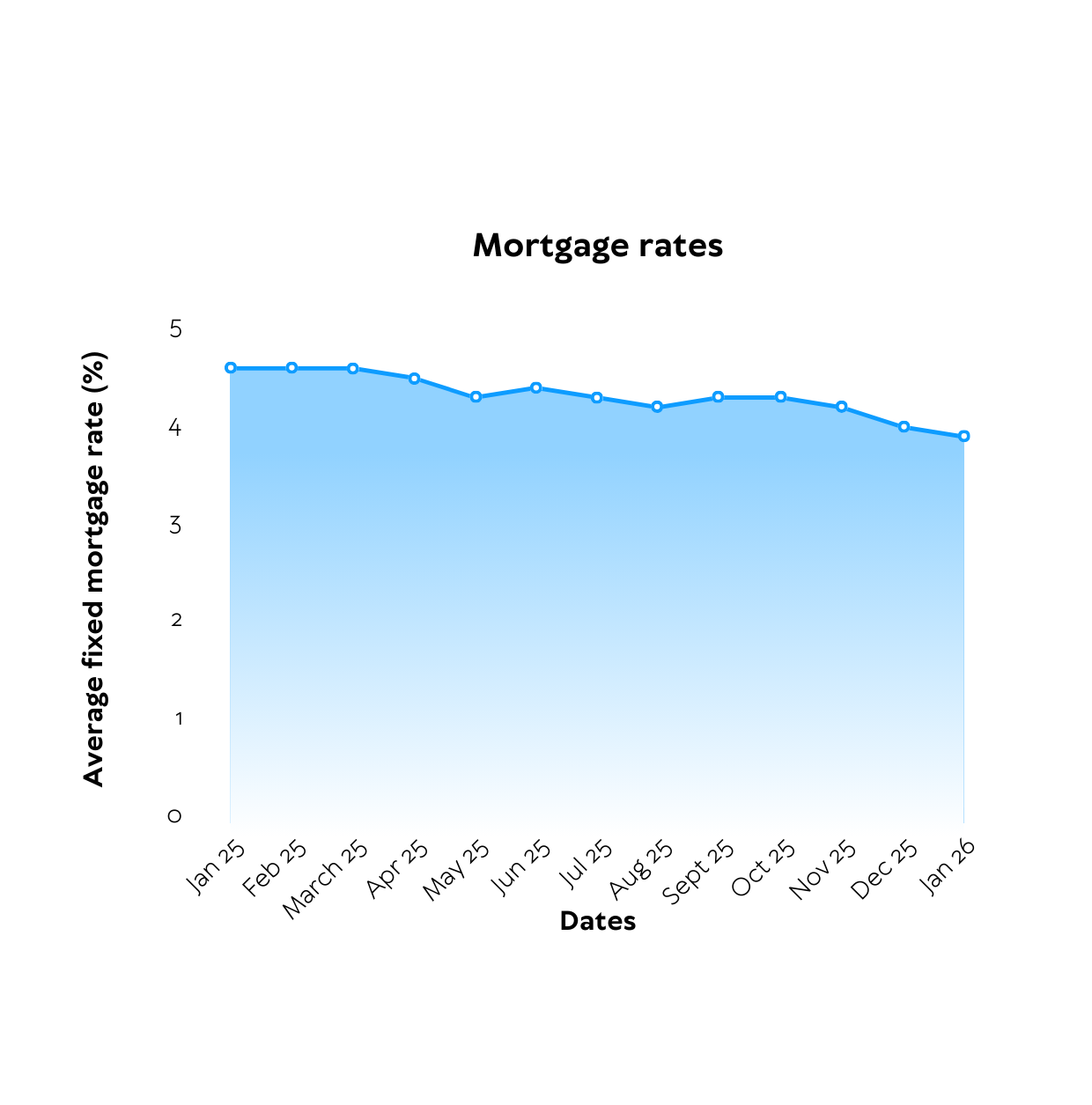 The average fixed mortgage rates declined steadily throughout 2024 and into early 2025, and experts expect this trend to continue over 2026 - particularly if the Bank of England base rate falls further. However, lots of other factors determine current mortgage rate trends, so it's wise to compare rates regularly if you plan to take on a new deal.